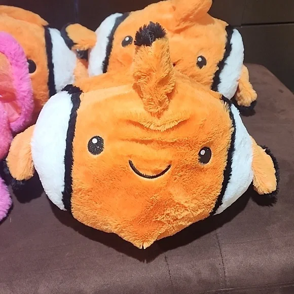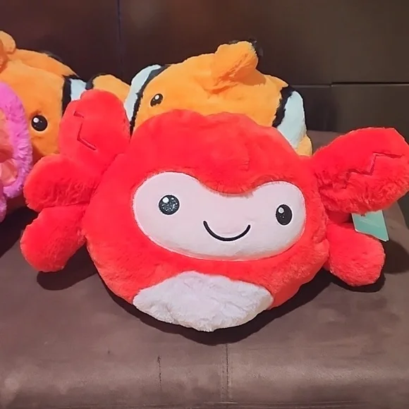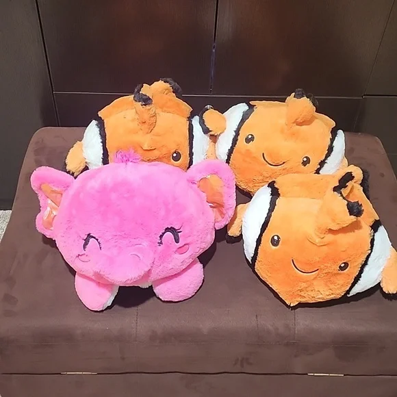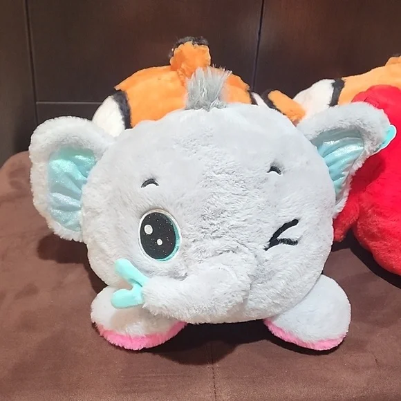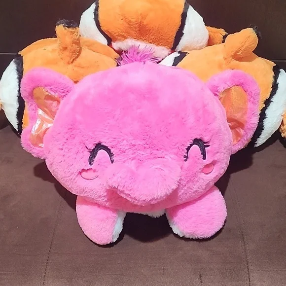 what an adorable bunch.this is a lot of 4 reversible plush stuffed toys.all NEW WITH original tags.They sell for $19.99 each. 3 reversible elephant - pink and gray3 reversiblecrab + clownfish(nemo)large enough to be used as a little pillow for a toddler.These are NOT small and compact stuffed toys - larger size.these can also be put on as a funny hatthese make great holiday gifts.