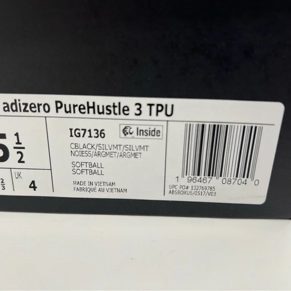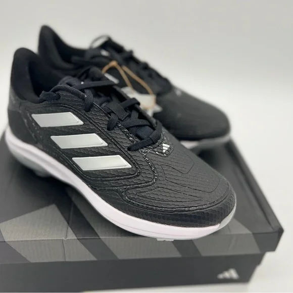 The product is an adidas Women's Adizero Purehustle 3 Sneaker in Core Black/Silver Metallic/White, with a US Size of 5.5. It is a cleat designed for sports like baseball and softball, providing both style and functionality. The sneaker features the adidas brand and is suitable for women looking for high-quality athletic footwear.