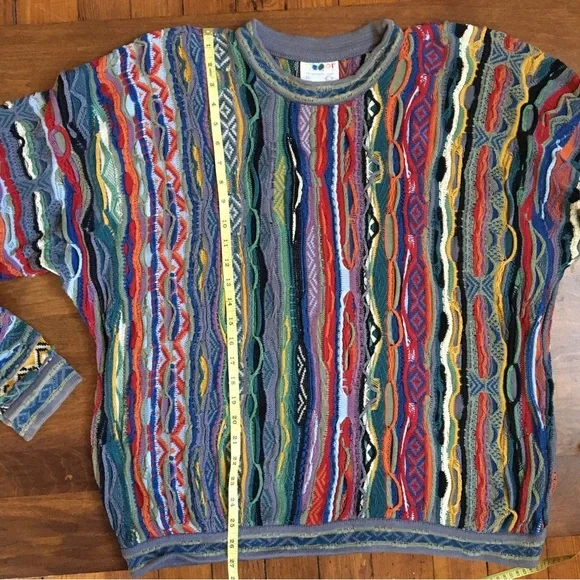 Father's Day is coming up.Get him the real deal - dope vintage 90s kaleidoscopic COOGI pullover.Gently worn; in very good condition.As with most vintage COOGIs, there are some barely noticeable loose threads that can be taken care of easily. Flat measurements:Pit to pit: approx. 26"Length:approx. 27"Happy to provide more photos and answer any questions.
