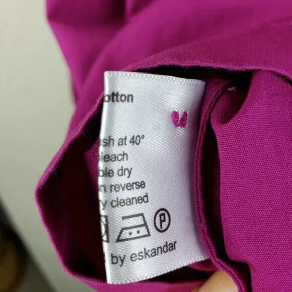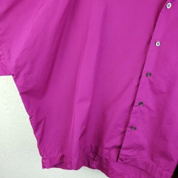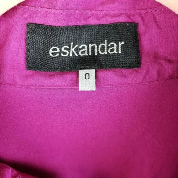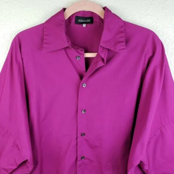 Eskandar Lagenlook Boxy style Shirt Blouse Topsize 0 (vanity sizing), super oversized fit - fits most sizes (M/L/XL) - see measurements belowPink Magenta/ Fuchsia 100% CottonBoxy and oversized, a classic piece from the legendary Eskandar.Excellent condition**New to ? Sign up using the code MARBLESPIKES and save $10 on your first purchase from ANY seller!***Comes from a smoke-free home*Fast shipping!! Please check the measurements if provided against an item you already own and fits well, to ensure the best fit. All measurements are approximate although I do try to be as accurate as possible. Colors may vary to those shown due to lighting or settings on your device.Made in Poland by EskandarExtra button attached at side seamApproximate measurements:length - 28", armpit to armpit - 32"About Eskandar:Designer Eskandar learned knitting from his grandmother as a child, and handworked details are still an identifiable part of his clothes today. His label, eskandar, features luxurious fabrics and variations on volumes that are both relaxed and refined. In this collection, there is room to be both comfortable and chic.