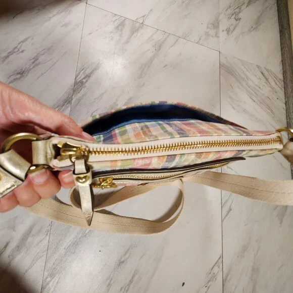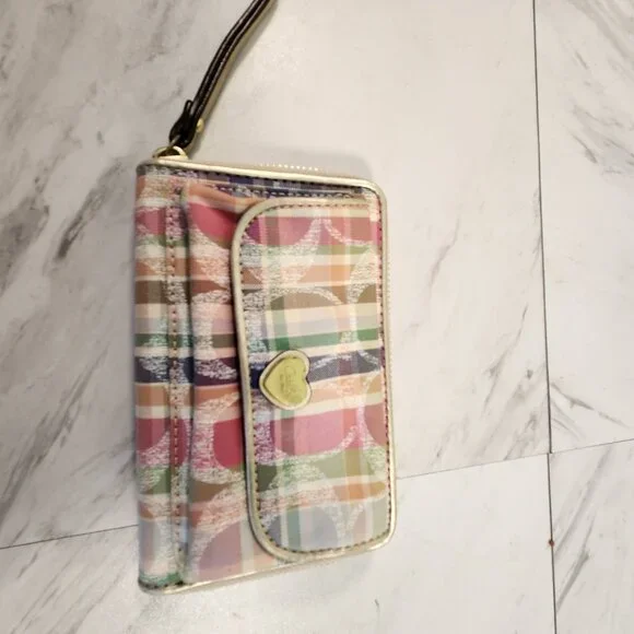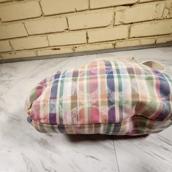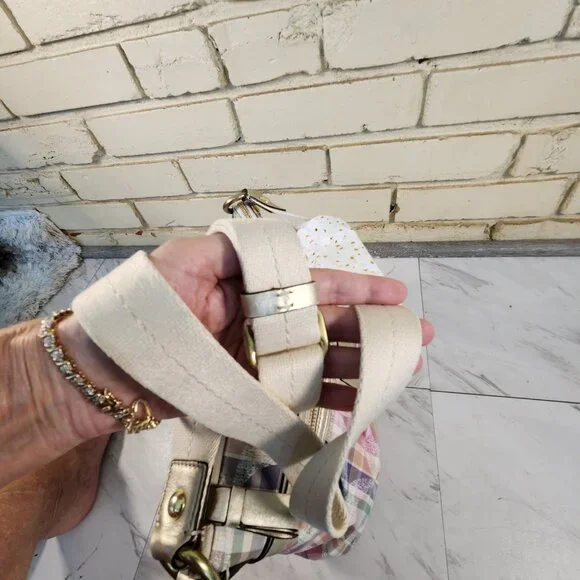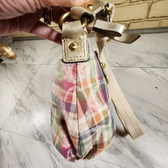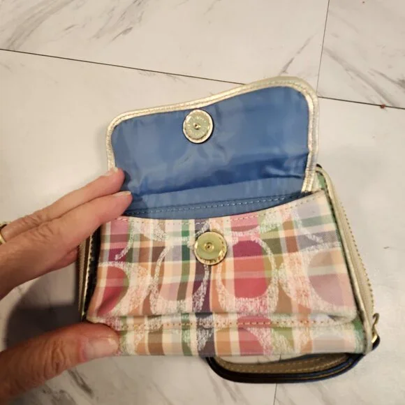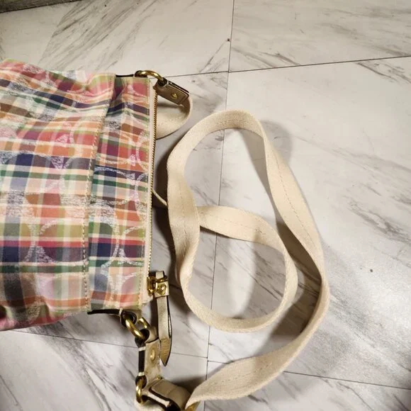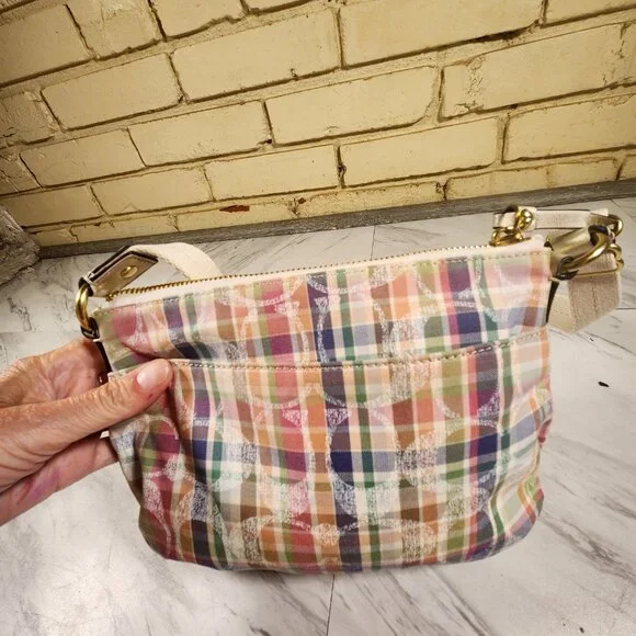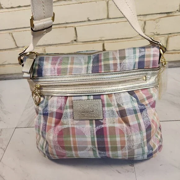 C6310x10x2.5Coach Poppy Daisy Madras Plaid Crossbody with WalletIntroducing Coach Poppy Madrasis an exquisite blend of vintage charm and contemporary style.Designed with meticulous craftsmenship, this purseshowcases a unique pattern that adds a touch of nostaglia to your essentials. Crafted from high quality maerials this piece is built to withstand the test of time. Gorgeous pastel colors pink, white, green, orange, yellow, blue,green, and tan fabric with webbing beige strap and gold leather trim.Itfeatures zip closure, perfect for keeping your items secure, large exterior zip pocket, and the back has a large slip pocket. The thoughtfull designed compartment and pockets allow for the must-need essentials. It has a sky blue colored liner with two slip pockets and a zip.Add a touch of elegancy to your wardrobe with this perfect accessory.The bag is in Like New condition the wallet is in very good condition,I do accept reasonable offers..questions Feel free to ask#Tote,#Coach,#Coachpurse,#luxury,#preppy,#colorful,#designer,#satchel,#prada,#canvas,#purse,#satin,#bag,#silk,#toriburch,#y2k,#Coachbag,#Bedstu,#LouisVuitton,#satchel,#black,#rare,#prada,#Cristiandior,#Gucci,#pocketbook,#Michaelkors,#Shoulderbag,#katespade,#satchel,#signature,#crossbodybag,#hobo,#Leather,#Metallic,#gucci,#channel,#sequins,#katespade,#leather,#contemporary,#preppy,#lightweight,#coachbag,#women,#rare,#vintage,#fendi,#Shoulderbag,#crossbodybag,#coatedcanvas,#silk,#luxury