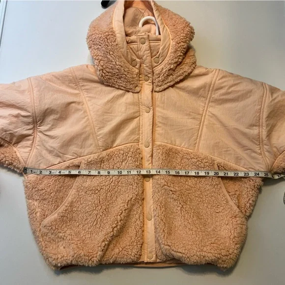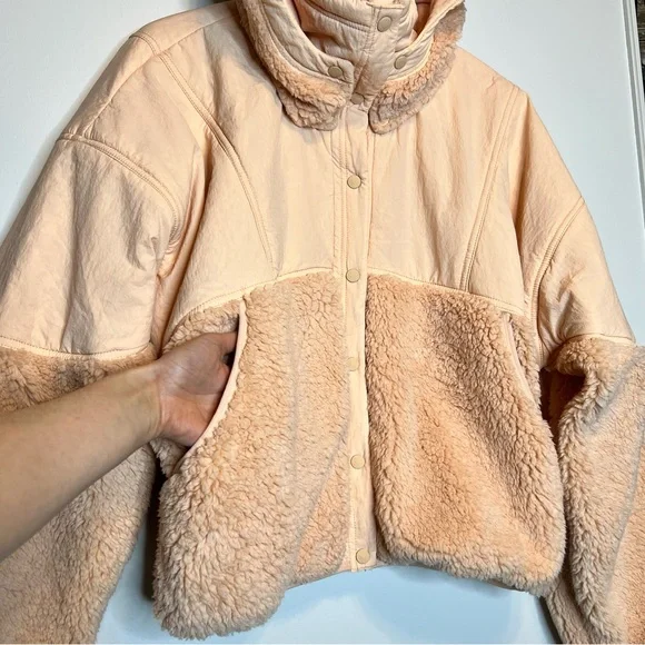 New Arrival🍑🔥Free People adventure awaits fleeceCondition: NWOT (New Without Tags) bought took off tags and hung in closetColor: peach 🍑 champagneSize M ( best fits a Size S-L) if you’re a size small then the jacket will be very oversized. A size medium will still fit oversized and a size large will be slightly oversized. Please refer to measurements before buyingYoure definitely set for adventure in this oh-so-cozy Sherpa fleece jacket featuring sporty, water-resistant nylon piecing. The Fit: Slightly oversized fit with a detachable hood The Feel: Warm and perfect for layering; plush sherpa fleece The Features: Snap button closures; foldover brushed elastic at bottom hem; fully lined with jersey fabric; FP Movement buti details Best For: Taking on all your hiking and camping trips; chilly day commutes📏 Measurements Disclaimer: All measurements are taken flat and are approximate. Fabrics may stretch or drape, so slight variations can occur. 🎨 Color Disclaimer: Colors may appear slightly different due to lighting and screen settings. I do my best to show items accurately, but lighting and devices vary. When available, I may include a model or stock photo that best represents the item’s color or style. If an exact match isn’t available, I’ll use the closest possible representation. 📝 Buyer Acknowledgment: By purchasing, you acknowledge that you’ve reviewed all photos and read the full description. Photos are part of the item description.