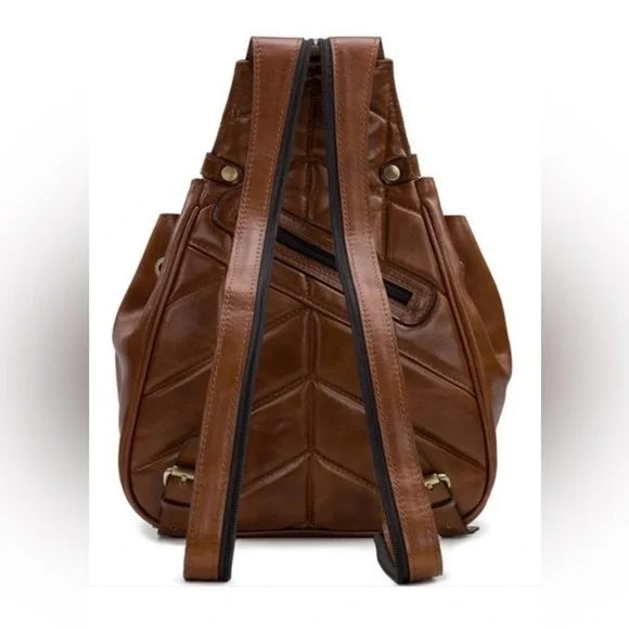 100% AUTHENTIC PREOWNEDSling it over your shoulder and get goin. With enough room for your essentials and a totally chic style, this saddle sling is so there for your everyday adventures.From Patricia Nash.• Style: Itala• Magnetic snap closure with drawstring, rear zipper pocket, burned edge finish• Zip pocket, two slip pockets, faux suede lining• Measures approximately 11" x 6" x 22" with a 12" to 15" strap drop• Body 100% leather/Lining 100% polyesterNOTE: This an authentic Patricia Nash Leather Bag. The snap closure on the bag is defective. The bag can still be closed with the drawstring located on top. Overall, the bag is in great & clean condition. Refer to photos.Retail Price: $329#SH-D342115