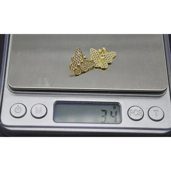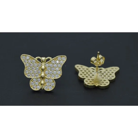 Let your passion shine with these stunning Womens Butterfly Pavé CZ Stud Earrings. Crafted from real 10K solid yellow gold, these earrings add a touch of sparkle to your look. With glittering CZ stones and 17.5mm in size, they are sure to turn heads. For the perfect combination of classic elegance and modern glamour, these earrings are the perfect addition to your jewelry collection at just 3.4gr.Specifications:Metal: Real 10K Yellow Gold (Stamped, 10K)Condition: Brand NewPolished: ShinyWeight: 3.4 gramsWidth: 17.5mmMetal DetailsType - 10k solid gold* Comes with a gift box