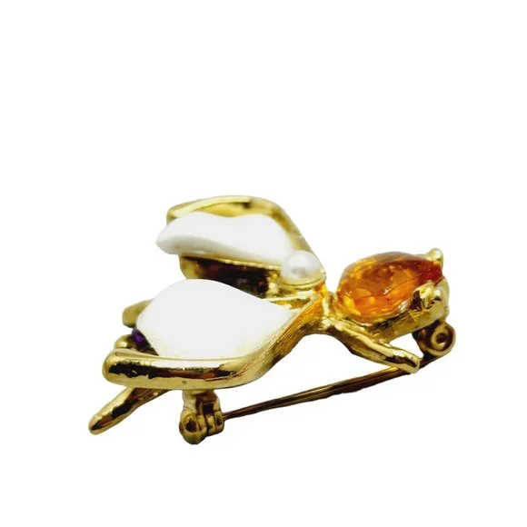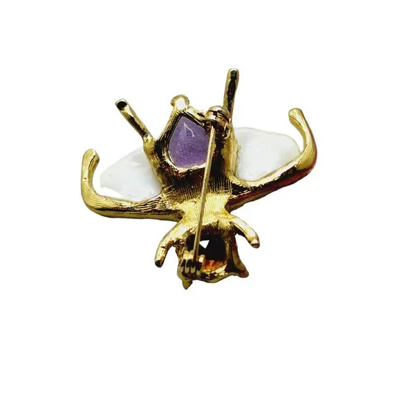 Vintage Unusual Milk Glass Heart Shaped Stoned Bug Fly BroochPretty gold plated bug fly brooch set with beautiful unusual stones.Size: 1.25''Condition: Very goodEra: Circa 1960'sSigned: UnmarkedFeatures:• Bug/Fly BroochPlease look at all the photos, as they are part of the description. I try my best to point out any flaws.Also please remember this is a preloved piece and may show signs of light wear, marks, scratches, etc.I will be posting a lot more jewelry, Keep checking back.